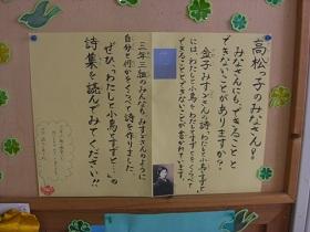 先日は、中秋の名月が話題になりましたが、月をテーマにした本の展示もありました。3年生では金子みすずさんの詩の学習に取り組んだ成果を作品集にしたものを展示しています。4年生では「ごんぎつね」の作者である新美南吉さんの作品を集めて読めるようにしています。読書の秋を楽しんでほしいですね。