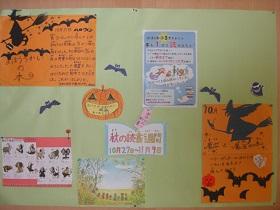 ひばりが丘図書館は10月に模様替えしました。正面はハロウィンをテーマに飾られています。また、ハロウィン関係の本も展示されています。借りられますので、ぜひ読んでください。