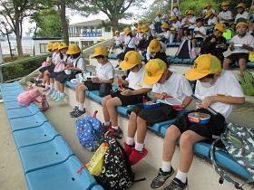 3年生の校外学習は、県ふれあい昆虫館、白山市野々市市防災センターを見学しました。昆虫館では、珍しいトンボや色鮮やかな蝶やなどを見ることができました。防災センターでは、私たちの安全なくらしがどのようにして守られるのかについて学習しました。お昼は、パーク獅子吼でお弁当を食べました。みんな楽しそうでした。