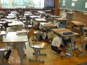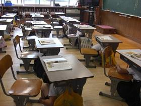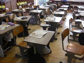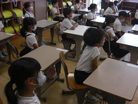 本日は、シェイクアウトいしかわ(県民一斉防災訓練)を実施しました。午前11時に地震が発生したという想定で、机の下に潜り、特に落下や倒壊からから頭部を守る訓練を行いました。4年生の教室では、訓練後に、「本当の地震じゃなくてよかった!」という声が聞かれました。緊張感を持って取り組むことができていてよかったです。