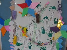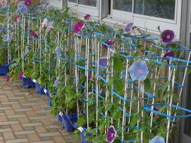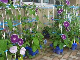 1年生のアサガオが咲き誇っています。この前、強い風が吹いて倒れたりして心配もしたところですが、すぐに元気になって、大きな花をまた咲かせています。特に朝は一斉に花が開くのでとても美しいです。また、1年生は七夕のお願いを書きました。かなえていきましょう。