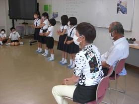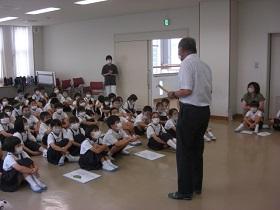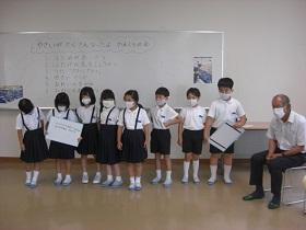 2年生の野菜はたくさんの実をつけ、児童は毎日のように収穫しています。これも畑の先生である駒井ご夫妻様のお陰です。畑の土興し、畝作り、苗の植え付け、肥料まきなど、全般にわたり、丁寧にご指導していただきました。先週は、気持ちを込めて、感謝の会を開きました。本来ならば、取れたての野菜を料理して食べていただきたいところでしたが、コロナ感染対策のため、調理を自粛することとしました。今回は、歌や野菜クイズや感謝のメッセージを伝える簡素なものになりましたが、2年生は、教えていただいたことにしっかりとお礼の気持ちを込めて会を進めることができました。駒井ご夫妻様、ご来校いただきありがとうございました。