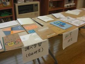 夏休み中の課題である一人一研究の作品が並んでいます。どれも自分が興味を持って取り組んだ力作ばかりです。なるほどと思うこと、役に立つこと、やってみたくなることなど、すばらしい作品ばかりです。テーマや研究の進め方などについて、今後の参考にしてほしいと思います。みんなよくがんばりましたね。