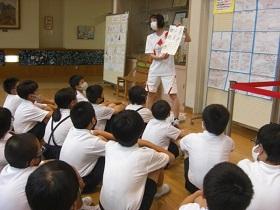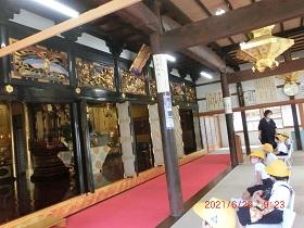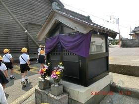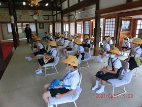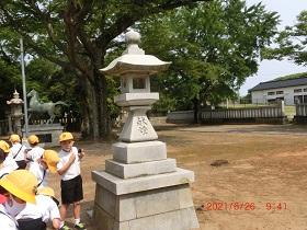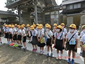 2年生は、2回目のまち探検を行いました。今回は、お寺や神社などを中心に回りました。学校の近くにはお寺が3つもあり、大きなお堂を見て驚いている児童もいました。また、神社は日陰が多くちょうどよい休憩場所になりました。見てきたことをこれからまとめていきます。