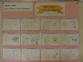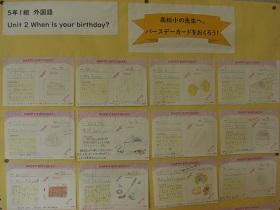 5年生の英語(週2時間)で、アクティブに学ぶため、休み時間などに先生に、誕生日とほしいプレゼントを英語で質問してきました。そして、プレゼントを絵で表現、掲示しました。一人一人緊張しながら英会話に挑戦していた姿が印象的でした。