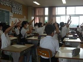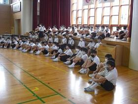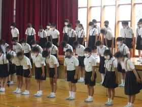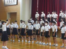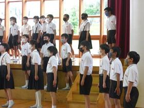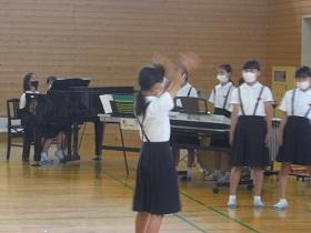 市音楽会は中止になりましたが、5年生は、学年が団結して何かをやり遂げようという思いから、合唱に取り組んできました。その成果を今日は披露しました。昼食後のわずかな時間を使い、全校のみんなで体育館で聴きました。5年生は、みんなの心を一つにすることの難しさをいつも感じながら、何とか乗り越えてこの日を迎えました。本番では緊張感も伝わってきましたが、美しく響き合う声にみんな聴き入っていました。終わった後も余韻が続き、達成感に包まれているようでした。5年生よくがんばりました。