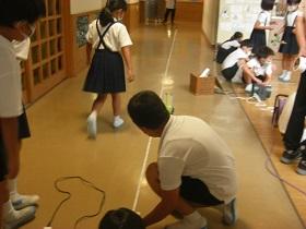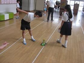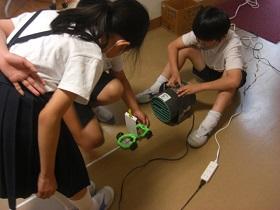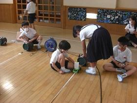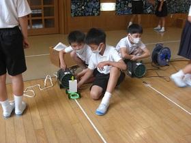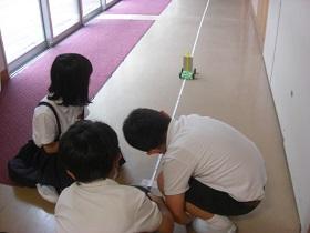 3年生が、理科の学習で、風で動く車を使って実験をしていました。風の強さによって車が進む距離がどうなるかを調べて記録していました。結果をまとめると何かがわかってくるかもしれませんね。