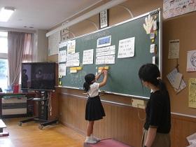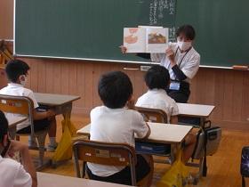 今朝は、各教室でミニお話会を実施しました。本を読んでくれる先生が誰なのかは、当日まで内緒にしてありますが、数日前からヒントが掲示されています。今朝は、担当の先生が初めて現れて読み聞かせを行いました。予想の当たり外れで最初はざわざわしますが、すぐに切り替えて、声に聞き入ります。校内が静かになり、音読の声が響きました。終わった後の拍手やお礼の挨拶もしっかりできました。
