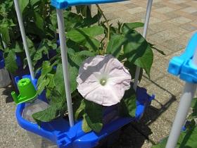 1年生のアサガオの花がいよいよ咲き始めました。今朝紫色の花が初めて開きました。これから毎朝、大きな花を見ることができます。1年生も楽しみにしています。