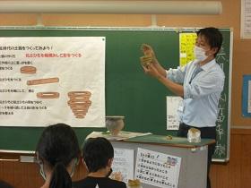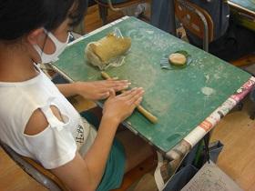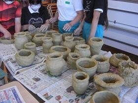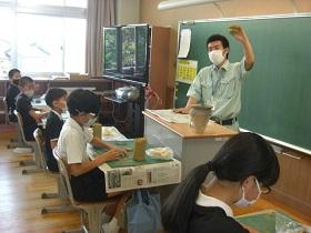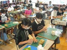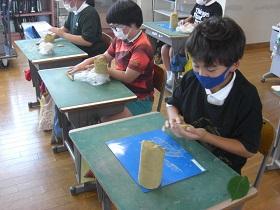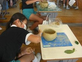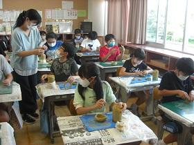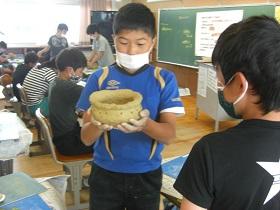 今日の午後は、6年生が弥生土器づくりに挑戦しました。市教育委員会生涯学習課のお世話により、粘土や道具まで準備していただきました。土器づくりに先立ち、縄文時代や弥生時代の歴史やかほく市の遺跡について説明していただきました。その後、作り方をとても丁寧に伝授していただき、児童は懸命にまた楽しく作っていきました。この頃気候が乾いていることもあり、乾燥によるひび割れと闘いながらの制作になりました。最後に模様と名前を入れて完成しました。今度は焼き入れを行います。