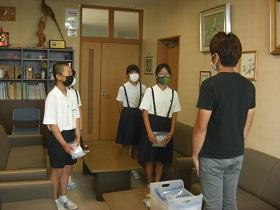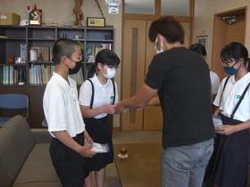 2021年6月26日 09時29分6月25日(金)に桜井材木の桜井専務様が来校され、高松小児童全員分のキーホルダーを贈呈していただきました。贈呈式では、コロナ収束を願ってお守りにしてほしいとごあいさつされました。端材を利用して、疫病退散の文字と絵、そして本校の校章を入れていただきました。地域の方の児童への温かい思いに触れ、代表の6年児童もしっかりとお礼の言葉を述べることができました。桜井材木様、誠にありがとうございました。