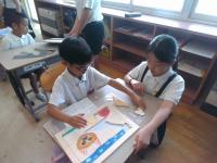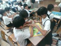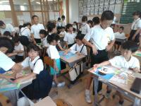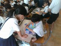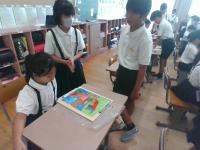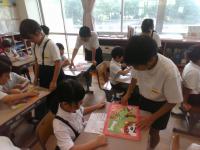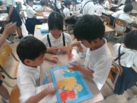 7/18(金)の朝学習の時間に,5年生が図工で糸のこぎりを使って作ったパズルで,1年生と一緒に遊んでくれました。糸のこぎりを上手に使い,丁寧な絵をかいて完成させたパズルには素敵なものがたくさんありました。難しいパズルもありましたが,5年生に優しくヒントをもらいながらパズルを完成させ,喜んでいました。5年生のみなさん,ありがとうございました。