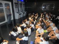 スーパーボールロケットづくり体験では、「どうしたら高く跳ぶのか」を一生懸命考える姿が見られました。また、プラネタリウムでは、子どもたちに人気の「名探偵コナン」と星座の学習がコラボした番組を鑑賞し、楽しく星について学ぶことができました。