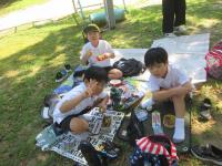 貴重な体験をした後は、様々な遊具でたくさん遊び、汗を流していました。天候にも恵まれ、外でお弁当をいただくことができました。