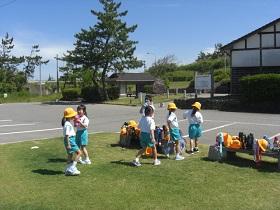 今日は、1年生が生活科の学習で公園に行き、みんなと仲良く遊ぶことをねらいとした学習を行いました。とてもよい天気に恵まれ、汗ばむほどの陽気の中、高松インター近くの「歴史公園」まで歩きました。遊具を使って遊んだり、植物や生き物を観察したりして、楽しんでいました。同じ遊びをしているグループが、途中で遊び方について話し合う様子も見られました。