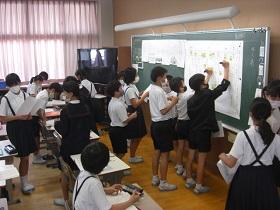 5年生は、互いに関わり合う学習を心がけています。授業では、少人数で、ペアで話し合いを重視する学習形態を取り入れ、全体でも「高松小の聞き方・話し方」を意識した聴き合いを大事にしています。今は、一つ一つそれぞれの学び方を振り返り、改善しながら進めています。また、「いいとこ見つけ」を書き、それぞれのよさを認め合おうとしています。みんな意識を高く持って取り組んでいます。