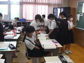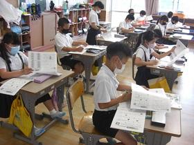2021年6月8日 08時46分毎朝8時15分から8時25分までの10分間は、朝の学習「朝学」の時間です。曜日によってメニューは異なりますが、幹事や計算などの習熟学習や、条件に気を付けて書く作文、読書などがあります。静かに自分で学習を進めるようにしています。今朝も静かにがんばっていました。