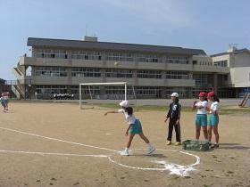 毎年この時期に、4年生以上で体力テストを実施しています。50m走、持久走、握力、柔軟性、など様々な項目で調査を行います。この日は4年生でもソフトボール投げに挑戦しました。普段あまり慣れていない児童もあり、少し練習をしながら取り組みました。