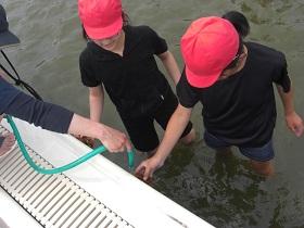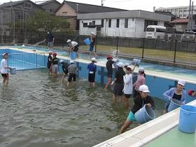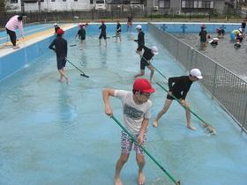 コロナ禍で今年も水泳学習は行わないこととしていますが、昨年も掃除をしていないことから6年生が掃除をしてくれることになり、昨日実施しました。2年ぶりのプール掃除で、水はもちろん汚れていましたが、ごみが詰まって流れないと言うほどでもありませんでした。ただ、オタマジャクシが多いことに悩まされたようです。6年生は、久々に大はしゃぎで、ところどころで水が飛び、そのたびに歓声が上がっていました。「やっぱりプール掃除は毎年した方がいいですね」楽しそうに感想を述べる児童もいました。今日だけで終えることはできなかったので、来週仕上げることにしました。