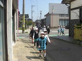 3年生は、社会科の学習で、校区見学を通して、土地の使われ方、地域の特徴をまとめていきます。まず第一段階として、どんなものがあるかを調査しに行きました。校区と言ってもとても広いので、みんなで分担をして調査し、店や公園、消防署など特徴的なものを地図にメモしてきました。後で、みんなで合わせてみて全体の様子をまとめます。