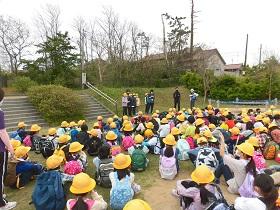 2年生は、今年も生活科でいろいろな野菜の栽培活動に取り組みます。畑のことについていろいろとご指導をいただくのは、駒井先生です。昨年もサツマイモづくりでお世話になっていますが、改めて今日は、2年生みんなで駒井先生にごあいさつをしました。よろしくお願いいたします。