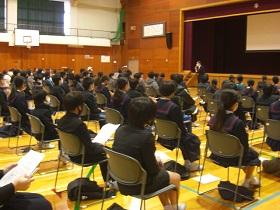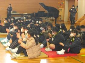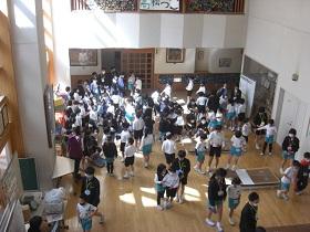 午後から、入学説明会のため、6年生は高松中に行ってきました。保護者の方にも参加していただきました。始めに酒井校長から挨拶があり、その後、小学生からの質問に対する回答をもらいました。また、学校生活のことや津幡署からスマホ被害の話を聴きました。その他に、授業見学や部活動の説明を聴き、新しい中学校生活に期待を膨らませているようでした。保護者の皆様、お忙しい中のご参加ありがとうございました。