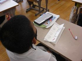 今日は6年生が、基本的な英会話がどれくらいできているか、先生と一対一で会話を行いました。名前、日、曜日、天気、気分など、いくつかの質疑応答を英語で行いました。みんな普通にすらすらと答えていて、この一年間で一段と会話力が上がったようです。