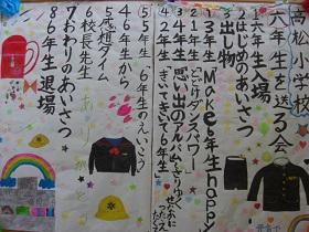 6年生・・・これまで学校のために、みんなのためによくがんばってくれました。笑顔を忘れず中学校でもがんばってください。活躍を期待しています。