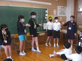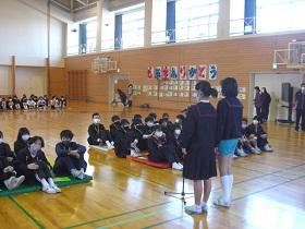 たてわりグループによる「なかよしお別れ会」が行われました。少人数グループで、今年1年、掃除や、運動会応援、遊びなどを通して異学年交流を行ってきた仲間です。今日は、昼休みの時間を使って、6年生に感謝して最後に仲良く遊ぶ企画でした。一緒にじゃんけんをしたり、だるまさんがころんだをしたりして、楽しく過ごしました。