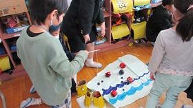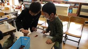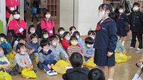 先週の12日(木)に、本校でこども園の年長児さんを迎えて「秋のわくわくまつり」を開催しました。年長児には小学校になれてもらうと同時に、1年生のリーダー性を高めることを目的としています。秋らしいコーナーを設けて、一緒に遊んだりして季節を感じ楽しむことができました。1年生はこれまでに計画を立て、みんなで楽しめるゲーム等を工夫しながら取り組みました。会の進行もがんばるなど、1年生はまた一歩成長しました。