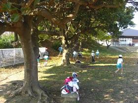 今日は秋晴れに恵まれ、先週延期となった「なかよし遠足」を実施することができました。運動会やそうじなどで活動する1~6年生で構成された小グループごとに、歴史公園や額神社横広場、高松第一公園、交通公園の4箇所で遊びました。みんなとても楽しく活動できて満足そうでした。