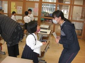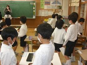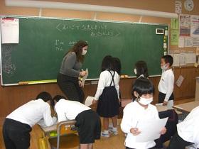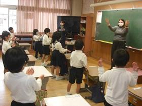 今日は、高松中学校から英語のローラ先生が小学校に来てくれました。1年生3クラスで授業を行いました。まず、ローラ先生の自己紹介を聞いたり、質問をしたりしました。その後、歌を歌い、英語で自己紹介(名前を聞き合う)をお友達として、サインを集めました。1年生は、ローラ先生に会えて嬉しそうでした。そして、恥ずかしがらずに、楽しそうに活動していました。