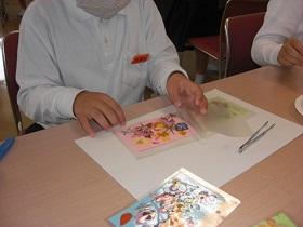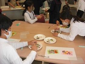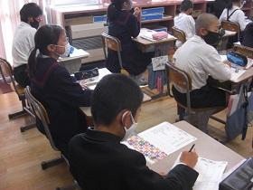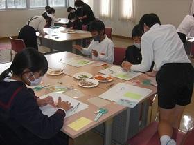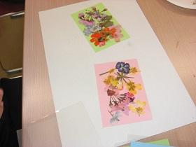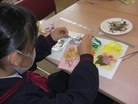 今日は、4年生が押し花とメッセージを添えた栞を作りました。これは、毎年お一人暮らしのお年寄りの方にプレゼントするものです。講師は、葛葉さん、黒川さん、野村さん、森さん、楠さんの5人です。鮮やかな押し花ををたくさん準備していただき、どれにしようか迷うほどでした。最後にラミネートをかけ、リボンをかけると、つやも出て立派な栞が完成しました。