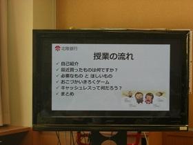 12月4日(金)に、5年生の金銭教育を実施しました。地元の北陸銀行高松支店から支店長さん、課長さんをお招きして、お金の大切さ、使い方、収支の記録などについて学びました。簡単なゲームで自分のお金の使い方をふり返るなどしながら、楽しく活動しました。これから新年を迎えてお年玉をいただく機会もあるかと思いますが、無駄遣いをしないよう大切に使いたいですね。