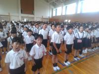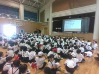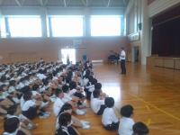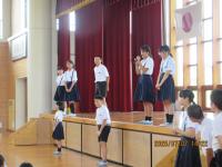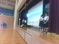 今日から7月です。1限目に7月の全校集会がありました。集会では,校長先生のお話,生活目標「廊下を歩こう」についてのお話がありました。わくわくタイムでは,体育委員会から「先生方の好きなスポーツクイズ」,6の3の劇の発表,今月の歌の発表があり,笑顔あふれる楽しい時間となりました。