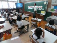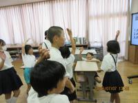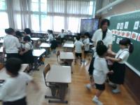 1学期最後の英語の時間でした。英語で数を数えました。グレイス先生といっしょに、数を数えたり、キーワードゲーム、ミッシングゲーム、仲間づくりゲームをしながら、楽しんで英語に親しみました。