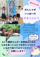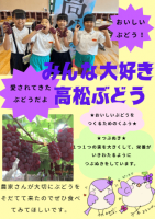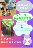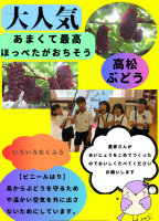 3年生が社会科の学習で作成した「高松ぶどう」のポスターが,7月21日(月・祝)~31日(木)に,かほくイオンの食品売り場に展示されます。どうすれば高松ぶどうのよさが伝わるかを考えて,それぞれのグループで工夫して作成しました。どのグループも,デラウェアのおいしさが伝わる素敵なポスターに仕上がっています。お時間がありましたら,ぜひ足をお運びください。