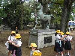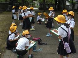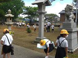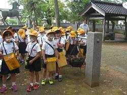 2年生は、前回に続きまち探検を行いました。梅雨で連日雨が続いていましたが、久しぶりの晴れ間をぬって出かけました。今回は、額神社や歴史公園などの施設を中心に見学しました。額神社では、蚊やありに少し悩まされましたが、みんなよく観察してメモを取っていました。