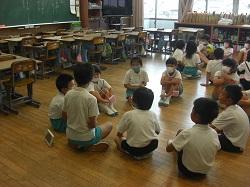 本校には1~6年生が混じって小グループを作り、一緒に活動する仕組みがあります。これをなかよしグループと呼んでいます。運動会もこのグループを使った活動を展開します。先週の金曜日の昼休みに、なかよしタイムを設定し、グループで楽しく活動をしました。