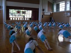 運動会で、5,6年生は組み体操を行います。その練習が始まりました。今は、流れを覚えることが中心です。一つ一つの技の概要を頭に入れています。さすが高学年は覚えが早く、かなり進んでいます。