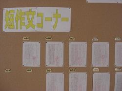 本校では、「書く力」の向上のため、短作文づくりに取り組んでいます。毎月、各学年ごとにテーマを決め、条件に合わせて作文を書いたり、高学年では、資料を読んで意見をまとめたりするなどの活動を短い時間で行います。今回は、「運動会でがんばりたいこと」や「便利ってほんとうにいいこと?」などをテーマに取り組みました。お手本として参考になる作品を毎月廊下に掲示しています。