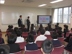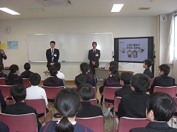 5年生の家庭科学習における消費者教育の一環として、今日はお金の使い方について、お金を扱うプロである銀行の方にお話を伺う機会をいただきました。今回は北陸銀行かほく支店より、杉林支店長、松田課長のお二方にお越しいただき、「上手に使おう 大切なお金」と題してわかりやすくお話をしていただきました。