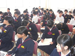 本日は、津幡警察署の大谷巡査部長をお招きして、アルコールや煙草を含めて薬物依存によって脳が萎縮し、恐ろしい症状を引き起こす場合があることを教えていただき、6年生は真剣に耳を傾けて聞いていました。最後に、誘われてもきちんと断る勇気を持つことの大切さを学びました。