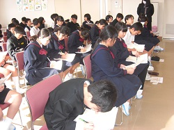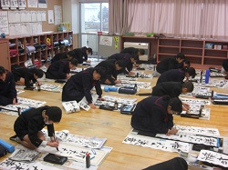 2,3限目に書き初め大会を実施しました。1,2年生は硬筆(鉛筆)で、3年以上は毛筆(墨)で行いました。