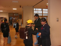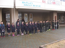 1月の生活目標は、「進んであいさつをしよう」です。玄関で様子を見ていると、児童はよくあいさつをしていると思いますが、「自分から笑顔であいさつする」というのはなかなかできるものではありません。昨日から、2つの異なる学年がチームを組んで、あいさつ運動を行っています。今日は、6年2組と1年2組が玄関前でがんばっていました。どの子も大きな声で元気よく声をかけていました。とてもすがすがしい気持ちになりました。