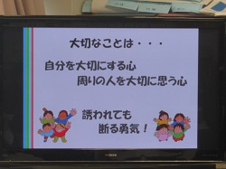 社会的に問題となっている薬物の乱用について、小学生の段階から正しい知識を持ち、薬物依存や犯罪等から自分を守るための学習を毎年行っています。