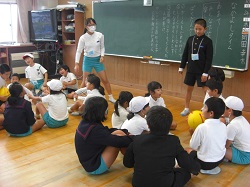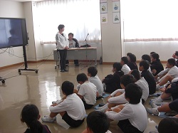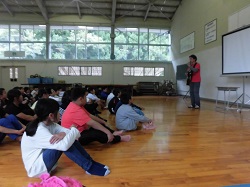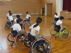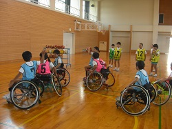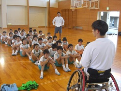 北風さんは、主に競技について、ルールやおもしろさ、素晴らしいテクニックを教えてくれました。ゴールを決める度に歓声が上がりました。児童は、元気いっぱいに車いすを動かしてボールを追いかけました。