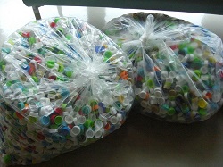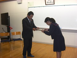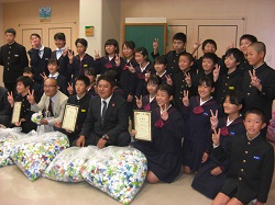 高松地区(小中合同)で取り組んでいる「エコキャップ回収運動」について、本日、高松中学校において、ロータリークラブへの贈呈式が行われました。この運動は、回収したエコキャップを通して世界の子どもを病気から救う手助けをする趣旨で各校が目標を決めて取り組んでいます。それぞれの取り組みに対し、ロータリークラブから感謝状もいただきました。
