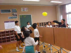 昨日昼休みに縦割りグループで「なかよし遊びを」実施しました。6年生リーダーを中心に遊びの内容を考え、グループのみんなに説明をして楽しく遊びました。短い時間でしたが、風船バレーやハンカチ落としなどのゲームを通していろんな学年と過ごし、相手のことを理解する時間となりました。