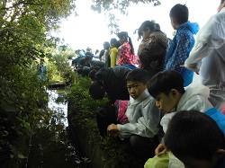 4年生は社会科で、ふるさとの発展に尽くした人やものの学習をしています。そこで地域の水田開発に大きく貢献した「長柄用水」を取り上げ、今日は見学に出かけました。